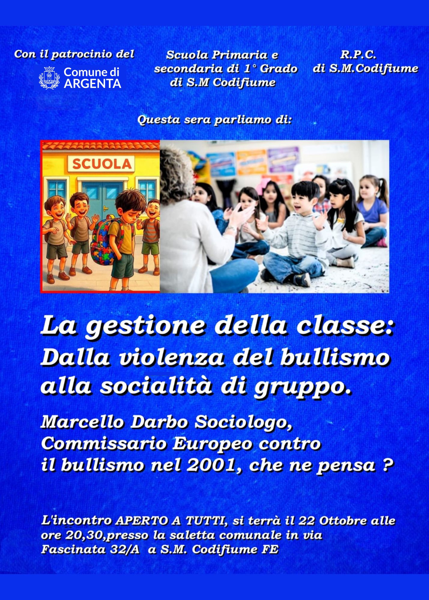 Sarà presente Marcello Darbo Sociologo, Commissario Europeo contro il bullismo nel 2001.
