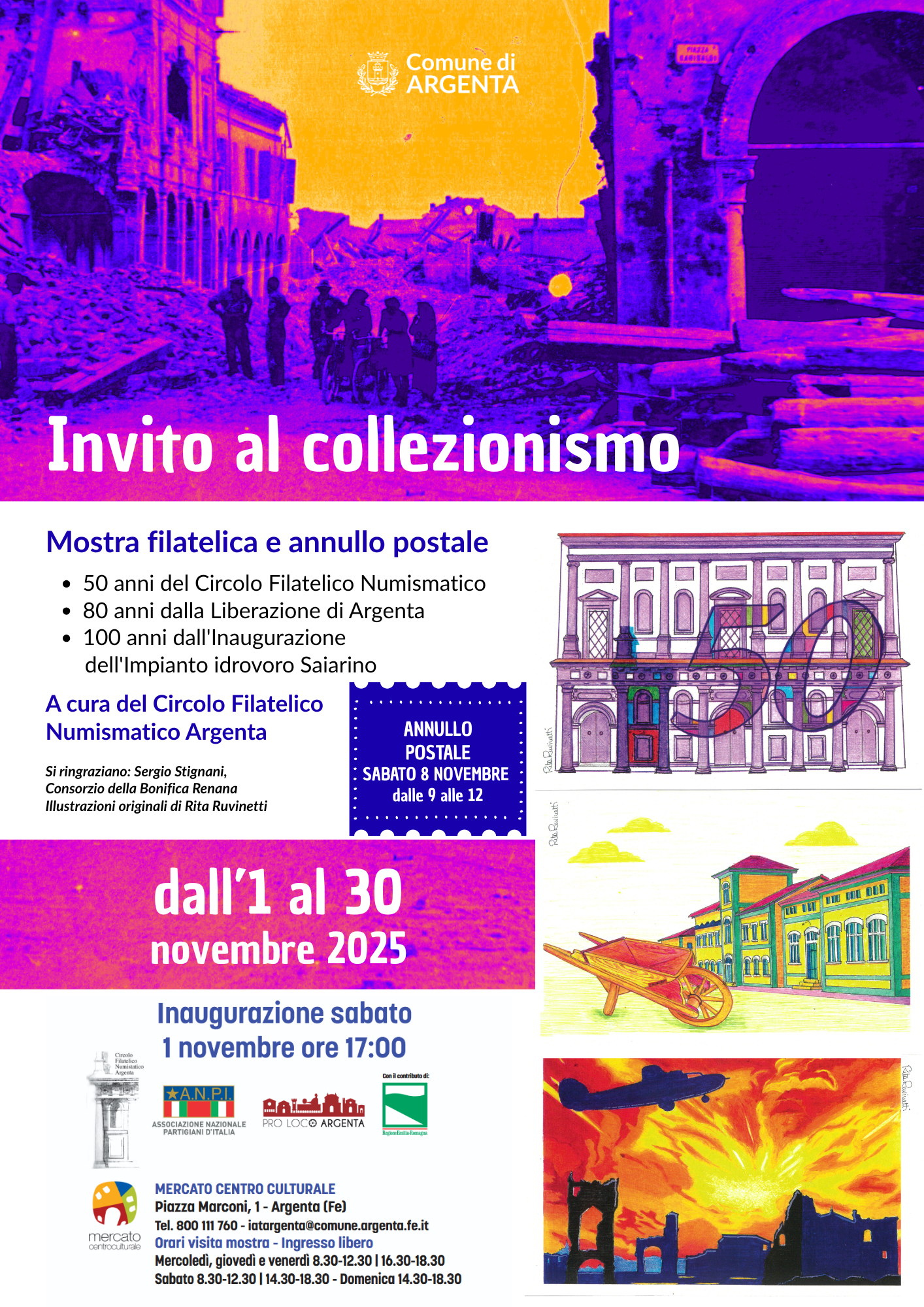 Circolo Filatelico Numismatico Argenta.L'evento rientra tra le iniziative finanziate dalla Regione Emilia Romagna sul bando Memoria del Novecento, che hanno accompagnato l’anno 2025.