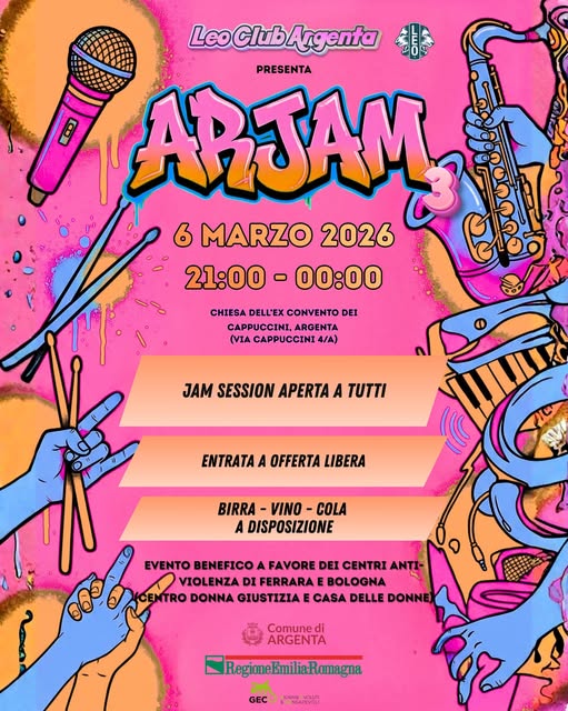 LeoClub Argenta in coprogettazione con il Comune di Argenta, organizza una serie di appuntamenti con musica live: una jam session aperta a tutti a scopo benefico.