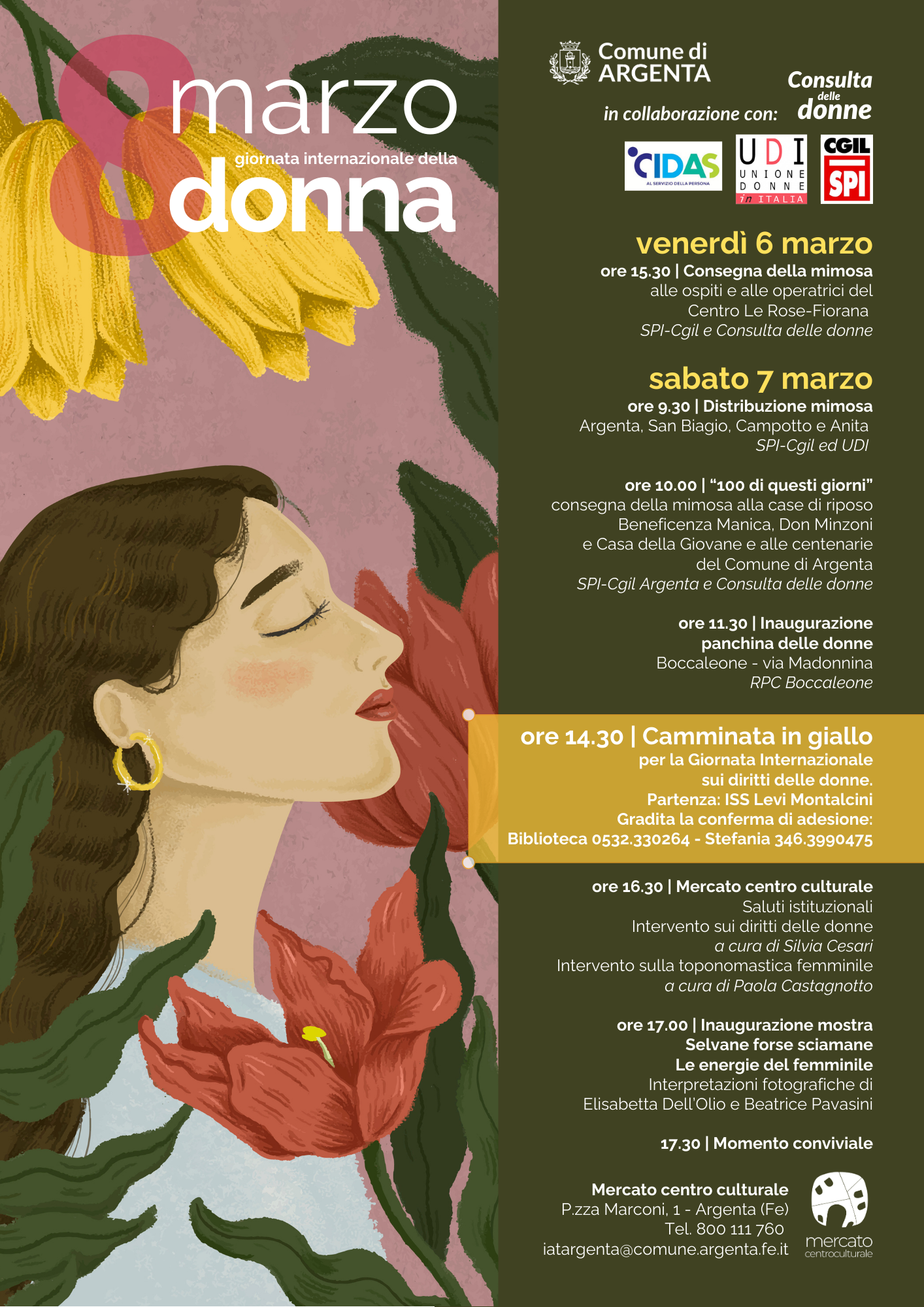 Sabato 7 marzo le celebrazioni proseguiranno con diverse attività in tutto il territorio comunale. Alle 9.30 distribuzione di mimose a Argenta, San Biagio, Campotto e Anita. Subito dopo, alle 10.00, il progetto “100 di questi giorni” porterà la mimosa alle case di riposo Beneficenza Manica, Don Minzoni e Casa della Giovane, con un’attenzione speciale alle centenarie del Comune di Argenta.
