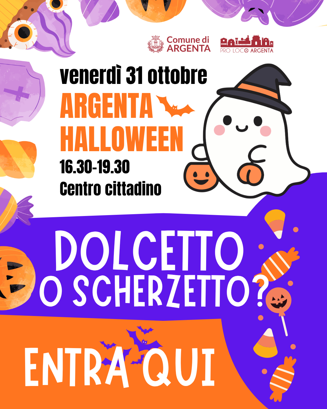 Divertimento per tutti dal pomeriggio fino a sera con Argenta Halloween, in programma venerdì 31 ottobre a partire dalle ore 16:30 nelle vie del centro cittadino. L’evento è organizzato dal Comune di Argenta in coprogettazione con ProLoco Argenta.
